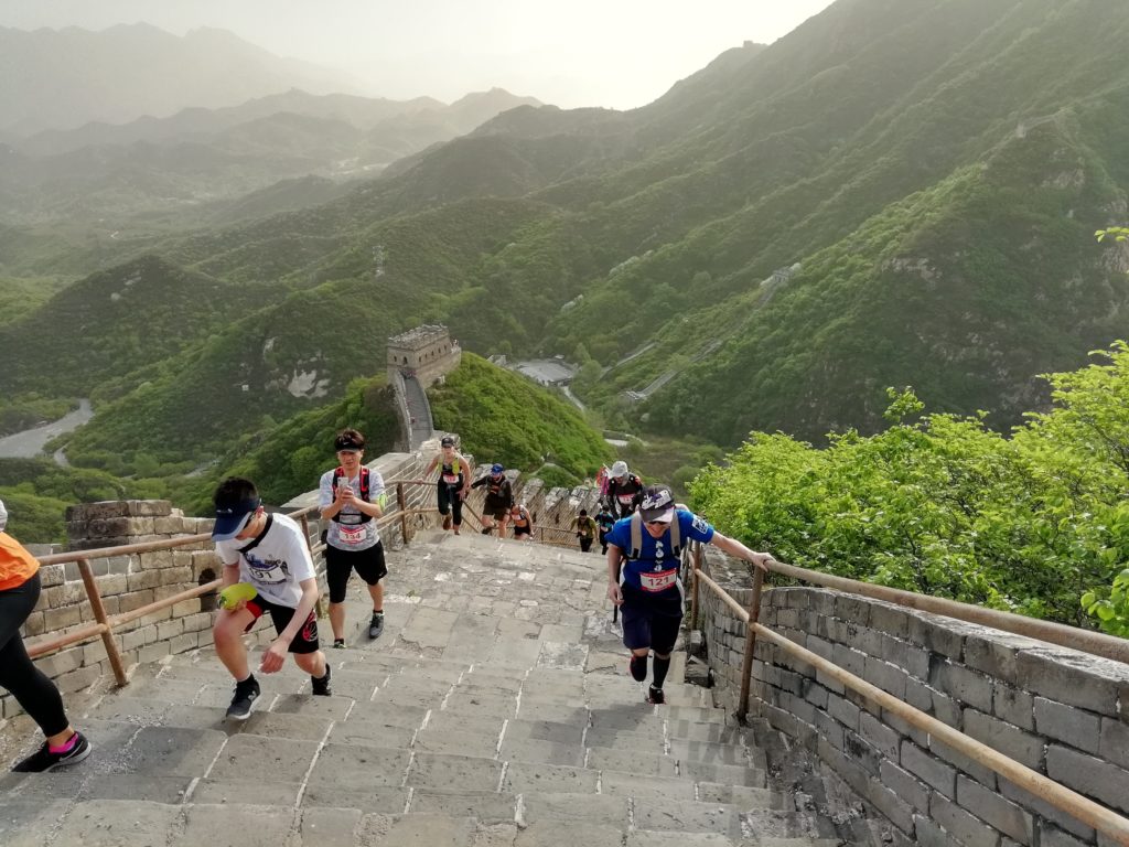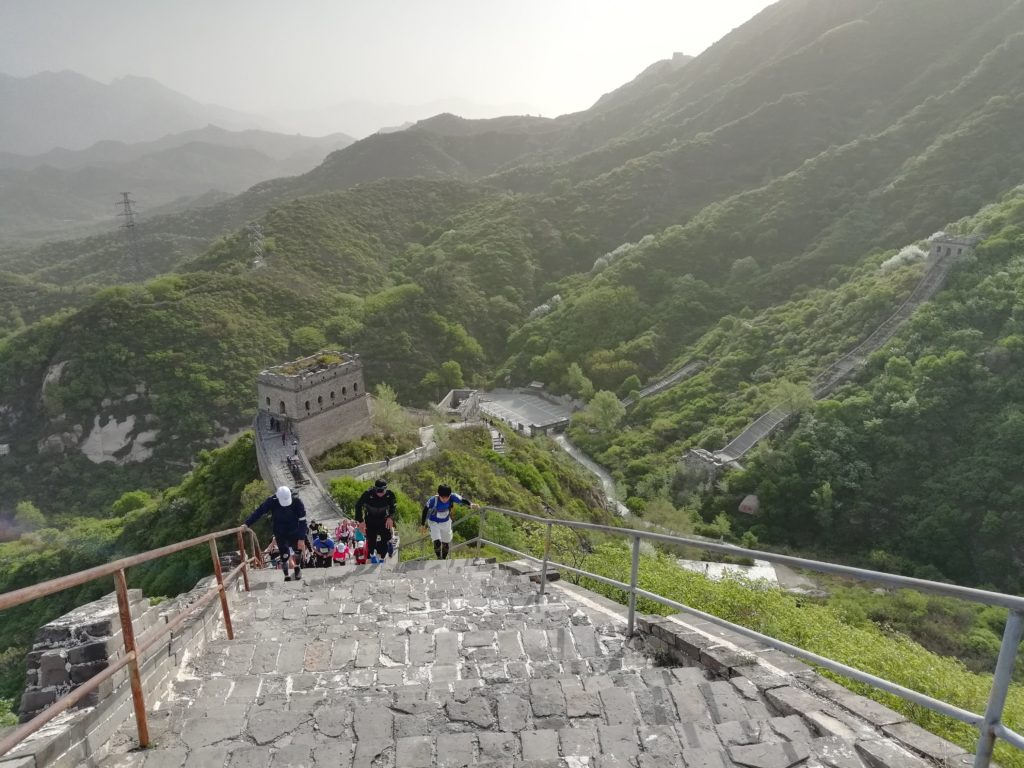 大会の名前は万里の長城マラソンですが、万里の長城は思ったよりも急斜面でありまた道も石段で所々崩れているような部分もあるため全力で走り抜けるというよりは、登りは手足を使って身体全体で登っていくようなイメージ、また下りはスピードが出過ぎてしまうためにライズブレーキをかけながらジグザグと降っていくイメージです。