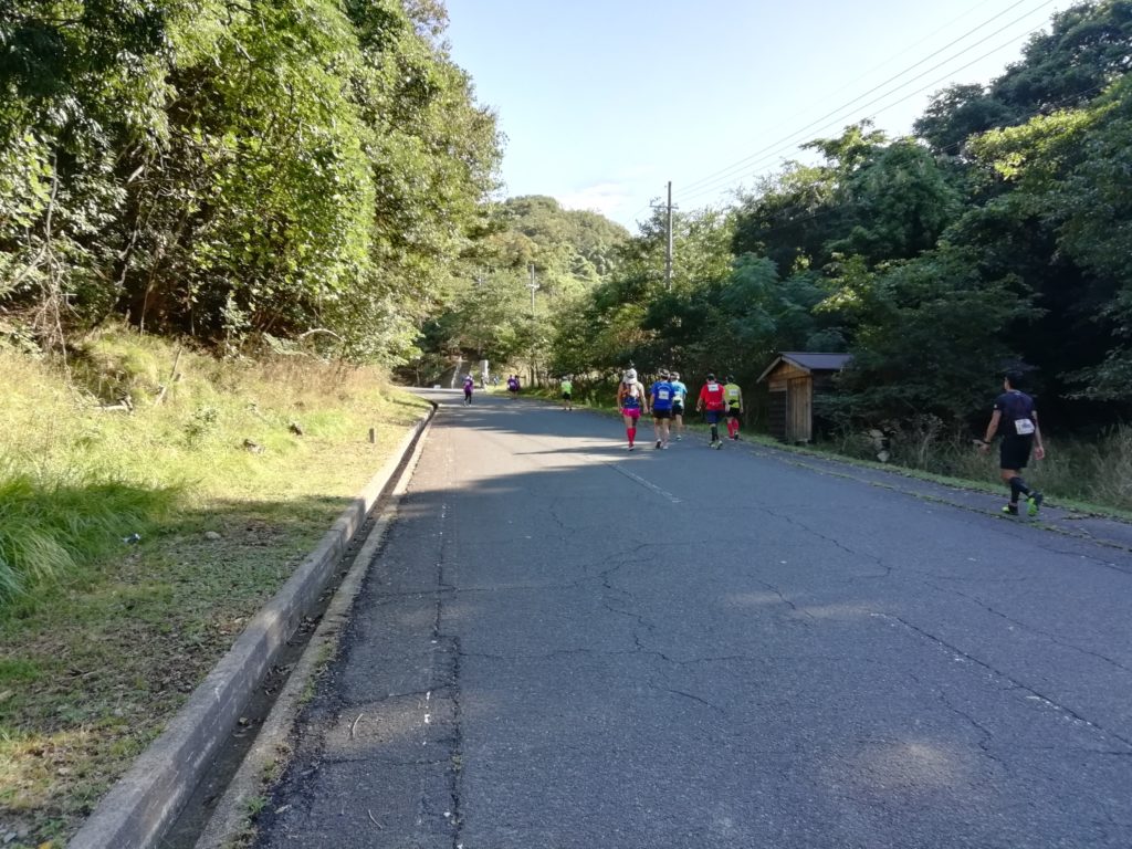 碇高原の坂はレース後半の60キロ以降に出てくること、時間帯的に丁度日が昇って熱くなる昼頃にこの件を超えないといけないため、体力的精神的にもきつい登りでした。この高原を登りきれば71キロ地点の2回目の荷物エイドあるので、そこに元気が出る物を預けてそれを励みにこの高原を乗り切るしかありませんでした(笑)。