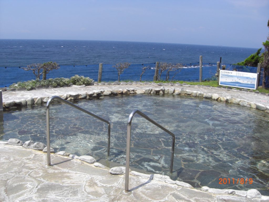 この大会の参加賞に大島元町港近くの、露店温泉「浜の湯」の無料入浴チケットがあります。ここの温泉は水着着用の混浴温泉で、温泉に入りながらも大島の綺麗な海を見れるスポットです。レース後の疲れた体を温泉で癒しながら絶景を見て大島を堪能してください。